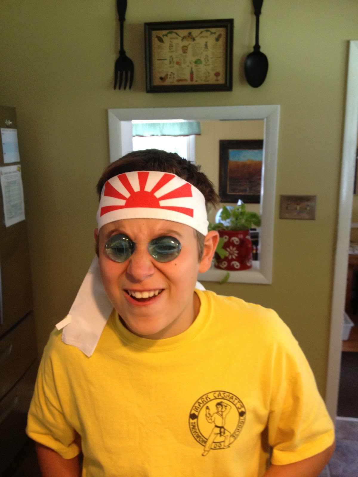 Aidan is really good at the Nunchucks- he is an entrepeneur also...he has made and sold several pairs already :) Aunt Julie bought a pair of his purse chucks- here he is teaching her how to use them- lol